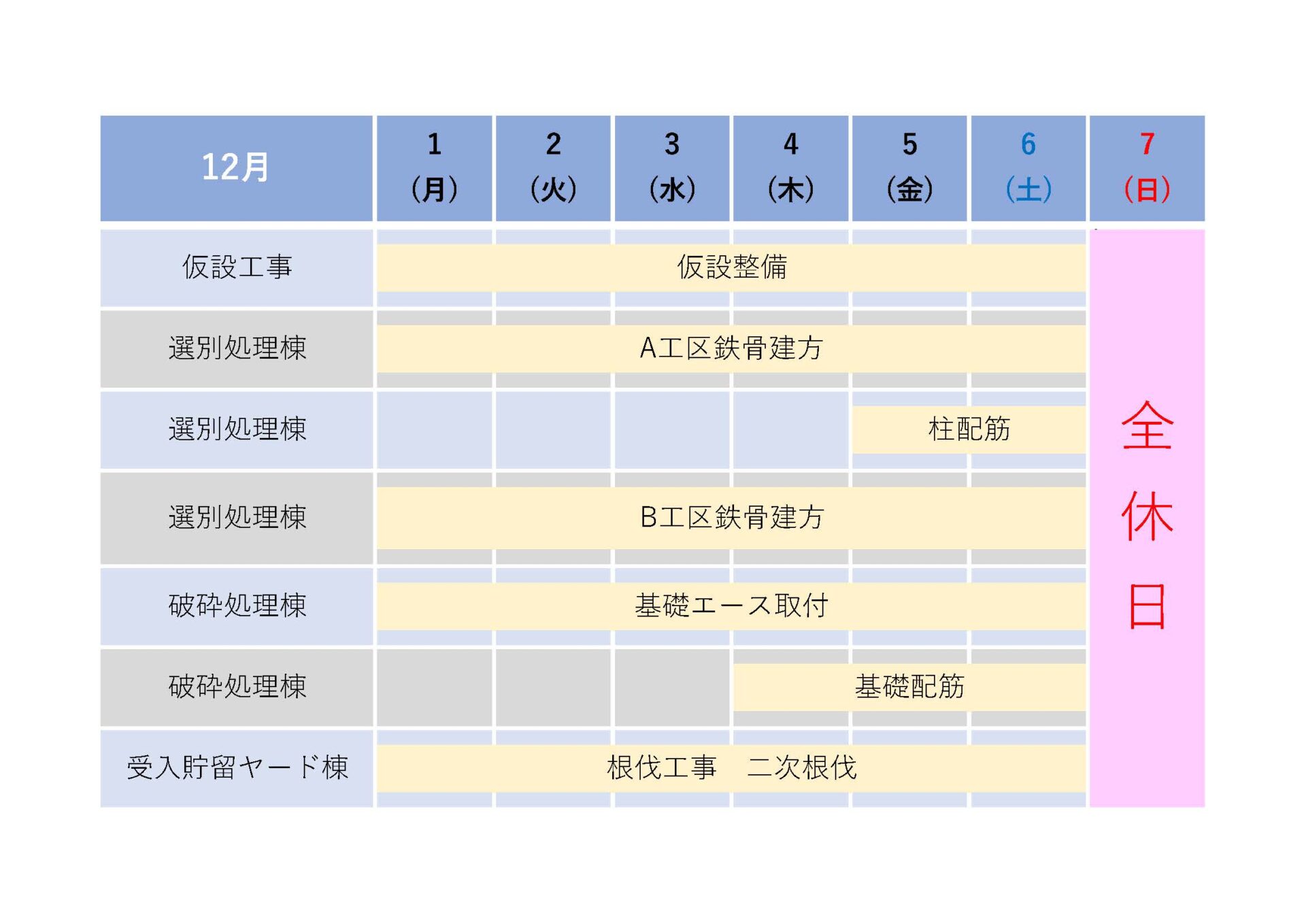 週間工程表を更新しました。