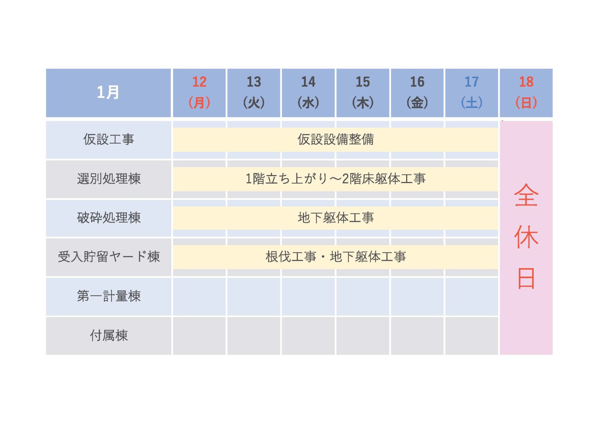 2026年1月12日~1月18日工程表