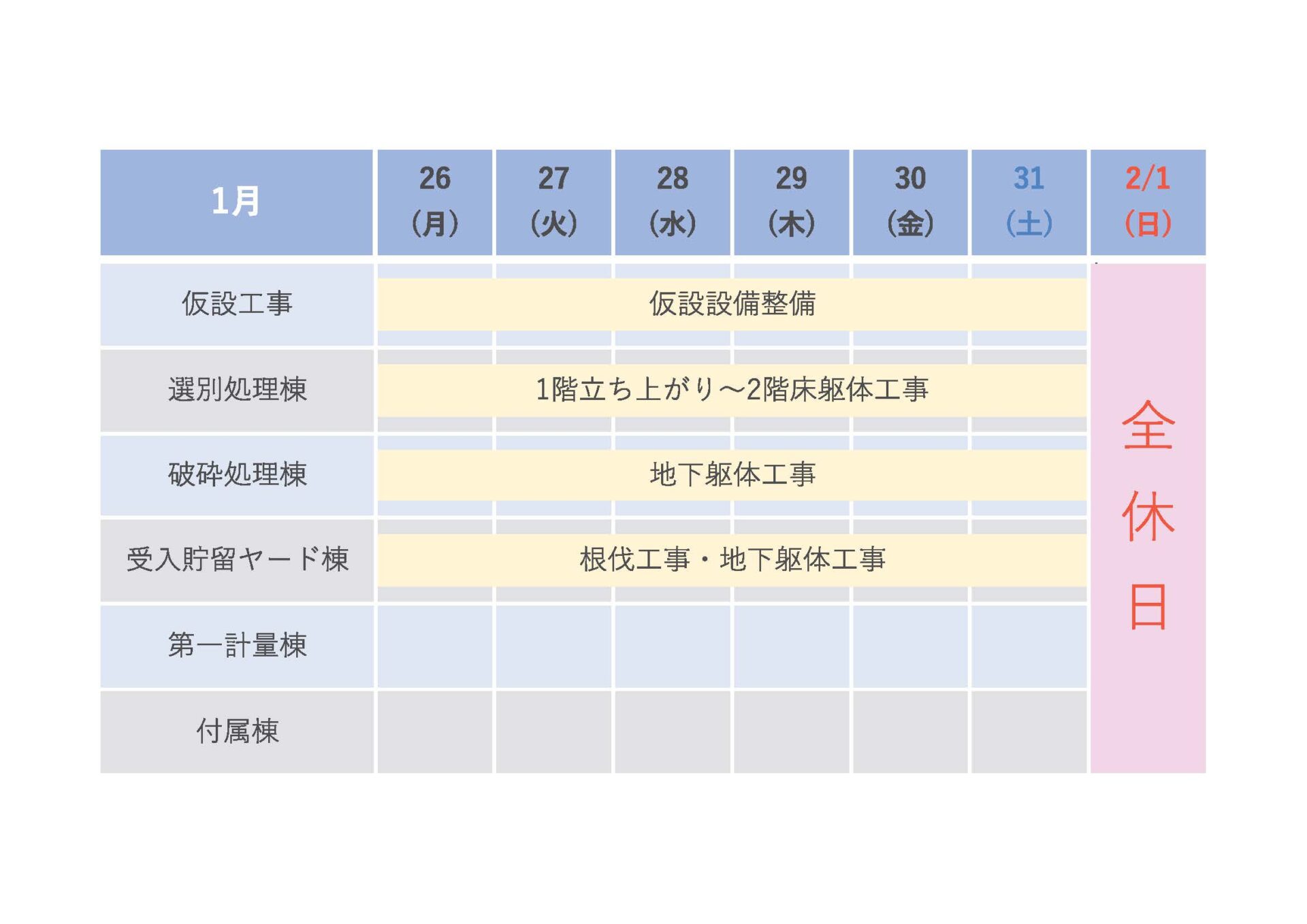 2026年1月26日~2月1日工程表